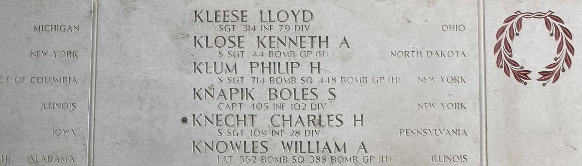 U.S. Army Staff Sgt. Charles H. Knecht, 27, killed during World War II, was accounted for Sept. 19. Knecht was assigned to Company C, 1st Battalion, 109th Infantry Regiment, 28th Infantry Division.